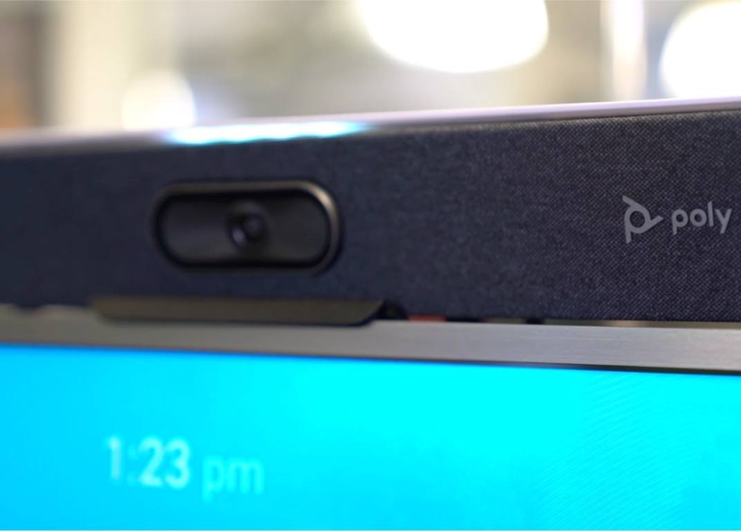 The secondary meeting area is semi open-plan. It is used for both morning and adhoc briefing meetings and video conferences. We undertook a site inspection, and despite the semi open-plan nature, echo and noise were not paramount issues. So for this solution, we installed another Poly Zoom Room system with control panel - no need for additional mics or sound processing - the Poly unit does it all. A simple uniform solution that the whole agency is trained to use.
